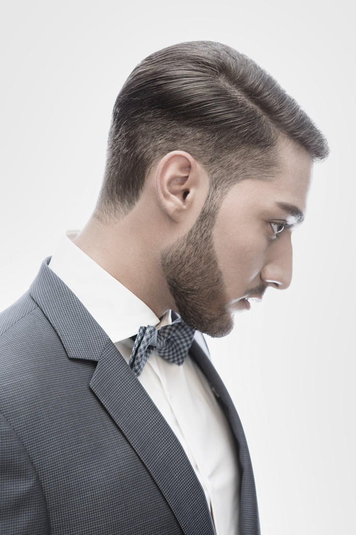 Geprägt von edlem Minimalismus, Coolness und jeder Menge Eleganz zeigen sich die Trendlooks des Schweizers. Mit akkuraten Schnitten, die Handwerk in Vollendung zeigen, läutet Eddine die Post-Bart-Ära ein. Oder etwa doch nicht? „Nein“, so der Meister selbst. „Es wird immer ein Spiel der Elemente bleiben. Mal vorder- und mal hintergründig – immer in anderen, neuen Variationen. Das ist Mode. Ein Trend löst den anderen ab und Gegentrends werden erzeugt. Beim Barbier geht es nicht darum wer der größte Trendsetter ist, denn es steht nach wie vor die Eleganz und Perfektion der Looks im Vordergrund.“ Wir halten fest: Bart bleibt. Sehr kurz gehalten und mega akkurat gestutzt. Aber aalglatt ist ebenfalls wieder hip. Die Frauen wird’s freuen! Denn weniger kratzig kommt auch mal gut. Barber wissen halt, was sie tun.