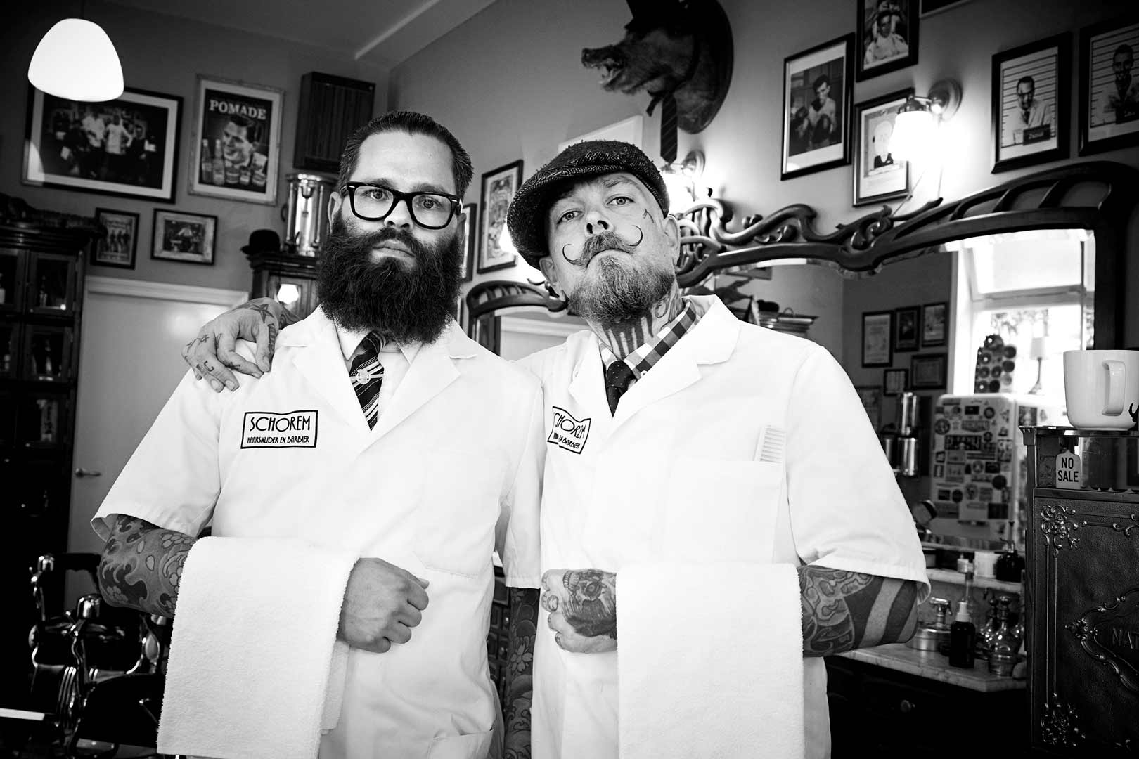 Das Phänomen „Schorem“: Ihr Image ist das der bad boys. Wer sonst nennt seinen Laden „Arschlöcher“, seine Produktlinie „Schweineschmalz“ und lötet sich auf der Show-Bühne vor Publikum kannenweise Bier rein? Die Frage, was die Rotterdamer Szene-Barber anders machen als alle anderen, ist leicht beantwortet: so ziemlich alles. Und das erfolgreich. Simone Frieb traf die beiden Rampensäue zum Interview. Und zeigt sich wahrlich entzückt.