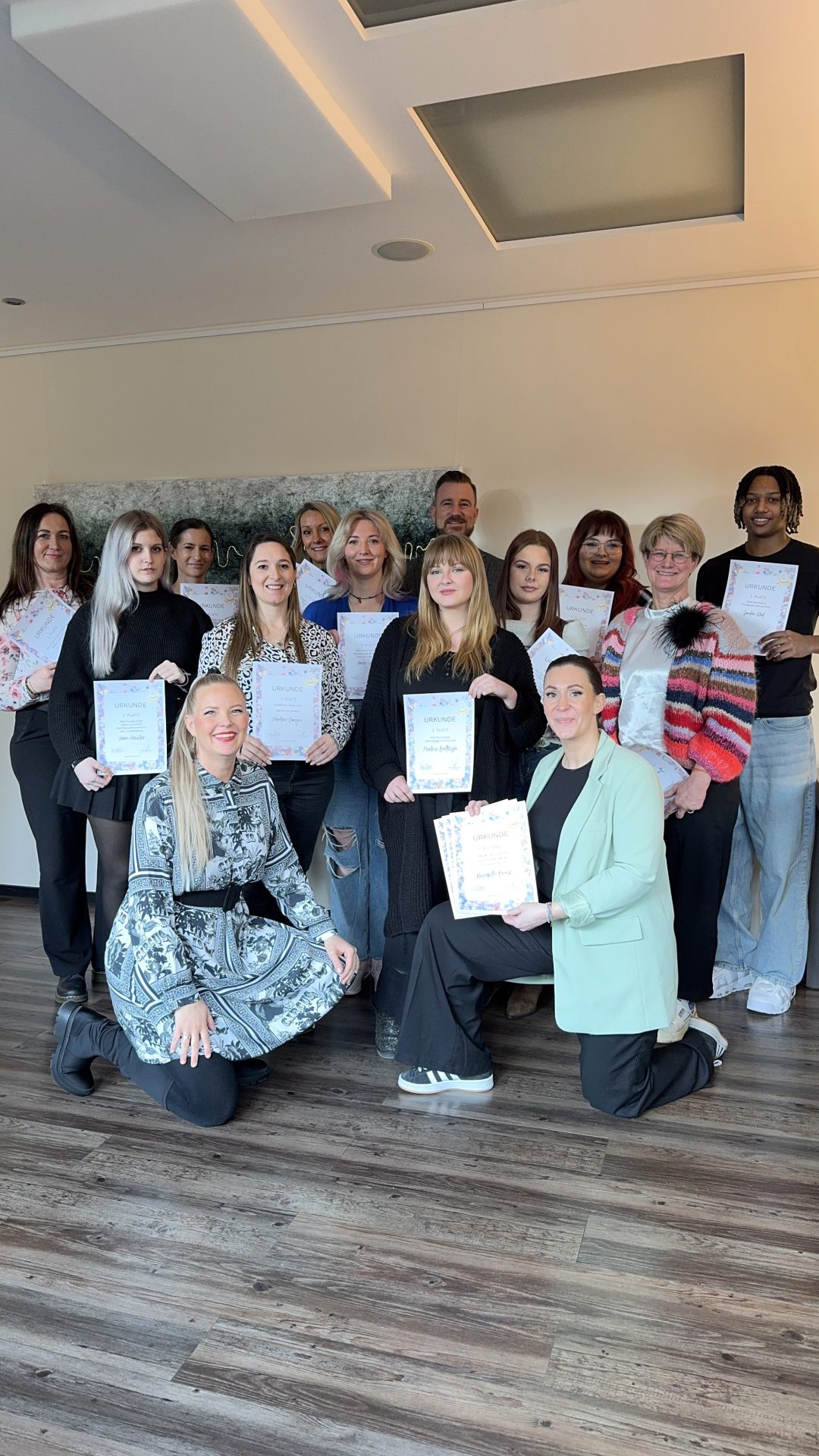 Für uns ist das kein Verwöhnen, sondern eine Investition ins Wohlbefinden – denn wer sich wohlfühlt, kann auch unsere Gäste glücklich machen. Wir bieten ein herzliches Team mit Platz für jede Persönlichkeit, Arbeiten auf hohem Niveau mit Top-Produkten, Weiterbildung in Spezialgebieten, Gesundheitsförderung, fairen Lohn plus Prämien, flexible Arbeitszeiten, einen zusätzlichen Urlaubstag, transparente Ziel- und Umsatzkommunikation durch die Zusammenarbeit mit Schäfer & Partner Consulting, sowie regelmäßige Einzelgespräche für fachliche und persönliche Entwicklung. Wo es möglich ist, sind wir digital unterwegs und auch jedes Teammitglied kann seine Termine ganz bequem auf dem Smartphone einsehen, verwalten und sich sogar selbst Ziele stecken. Und erst kürzlich gab es eine Premiere: Annabelle erhielt als erste in unserer Geschichte einen Firmenwagen.